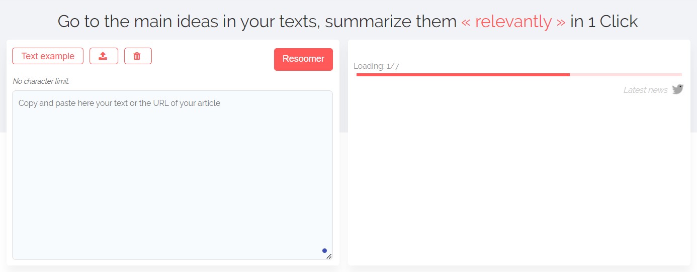 Resoomer is also an efficient summarizing tool that extracts the main points from a text document. It supports a variety of file formats, allowing you to upload a document in any format. Resoomer specializes in analyzing technical documents, including reports, project plans, product specifications, and user guides.